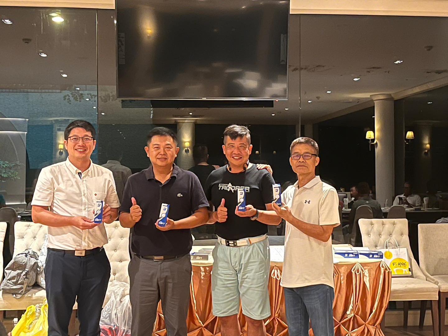 已結束 新北欖台商高爾夫球隊成立暨第一次月例賽 活動日期 2023年09月05日 07:00 至 2023年09月05日 21:00 活動地點 Lakewood Country Club 新北欖台商高爾夫球隊正式成立! 定每個月第二個週二舉辦月例賽。 9月5日在 Lakewood Country Club 開桿第一次月例賽,隊員及外賓30多人參與,沉浸在熱鬧及愉悅的賽事,最後晚宴餐敘及進行頒獎儀式。 歡迎對高爾夫球運動有興趣者加入,以球會友! 活動照片 (6張)