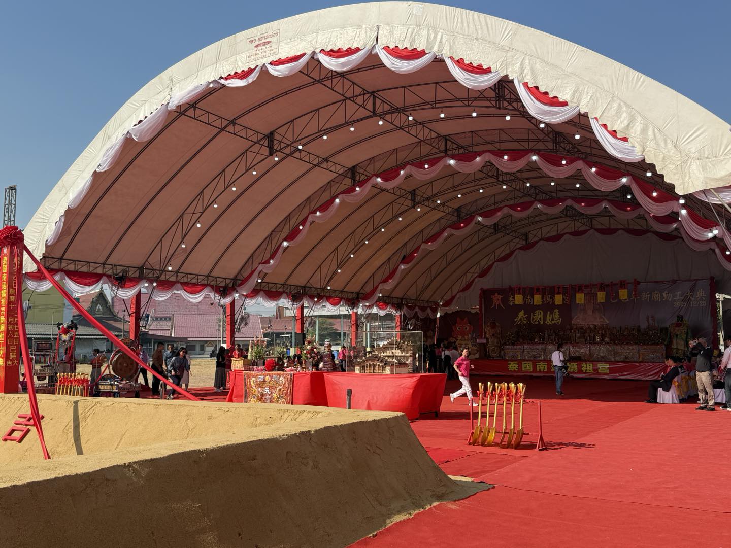 最新消息 南瑤媽祖宮二十週年慶典暨新廟動土大典 2026年01月08日 admin 4 次瀏覽 泰國南瑤媽祖宮為慶祝分靈來泰二十週年,並正式啟動新廟建設工程,於12月24日舉辦「二十週年慶典」,並於12月25日隆重舉行「新廟暨媽祖文化園區動工動土大典」。本會多位幹部代表分別出席兩日盛會,共襄盛舉。活動期間,母廟及各友宮代表、旅泰僑界領袖與地方政要齊聚一堂,共同見證台灣媽祖信仰在泰國深耕二十年的重要里程碑,場面莊嚴隆重,意義非凡。 活動照片 (5張) 分享: